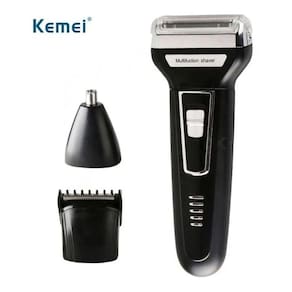 Barbeador Elétrico 3 Em 1 Kemei Km-6776 Chegou a máquina Kemei 3 em 1, com três ponteiras diferentes, possibilitando você retirar pelos de orelhas e nariz, fazer pezinho, fazer a sobrancelha, barba e retirar pelos do corpo.Ela é recarregável em rede elétrica 110v ou 220v, ou seja é bivolt. Leva 8 horas para recarregar totalmente e dura cerca de 60 minutos de uso.