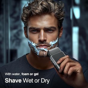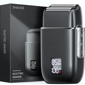 Navalha elétrica, barbeador elétrico Emochies para homens, barbeador de alumínio atualizado com 3 velocidades, lâmina flutuante dupla IPX7 à prova d'água tela LED molhada/seca USB tipo C recarregável - FACA DUPLA AFIADA CURVA: o barbeador de alumínio adota lâminas curvas de aço de precisão; corta rapidamente barbas longas e curtas; a malha curvada oferece proteção para a pele e minimiza a irritação ao máximo possível; nosso barbeador adota tecnologia de detecção inteligente para evitar efetivamente beliscar o cabelo, proporcionando uma experiência de barbear confortável e suave todas as vezes - Barbeador flutuante flexível: nosso barbeador elétrico adota design ergonômico e ajuste de vários ângulos; o barbeador se adapta aos contornos exclusivos do seu rosto para proporcionar um barbear rente enquanto também protege sua pele e obtém o barbear perfeito; garantindo que mais pelos possam ser removidos sempre que se barbear; Desfrute de uma experiência de barbear suave, confortável e confortável - Motor forte de 3 velocidades: nosso barbeador elétrico para homens está equipado com um potente motor de alta velocidade com 3 velocidades ajustáveis (7500/8000/8500 RPM); que pode executar até 20.000 ações de corte por segundo. O poderoso motor do barbeador pode raspar diferentes durezas da barba e torna o barbear eficiente e confortável; proporcionando a você um efeito de barbear mais limpo - IPX7 à prova d'água e uso seco/molhado: nosso barbeador elétrico é totalmente à prova d'água IPX7; recomendamos amaciar a barba com espuma de barbear primeiro para um barbear completo; desfrute de um barbear seco confortável ou um barbear úmido refrescante com espuma de barbear; a cabeça do barbeador lavável permite que você limpe facilmente diretamente sob a torneira; o que é fácil de operar - Especialistas em barbear e presente ideal: nossos barbeadores masculinos são projetados com moda; perfeitos para dar aos maridos; pais, filhos e namorados todos os dias