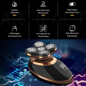 Especificações: Marca: VGR Modelo: V0316 Tensão: 100V-240V Tempo de carregamento: 2 horas Tempo total de carregamento: 90 minutos Número de cabeças de cortador: 5 cabeças de cortador, 4 cabeças de cortador rotativo Método de limpeza: banheiro em gel Uso: barbear duplo molhado e seco