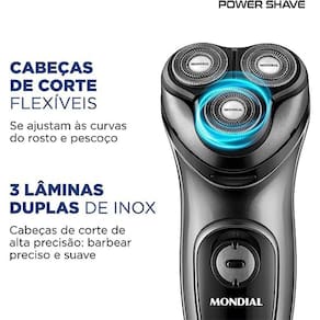 Barbeador elétrico mondial be-02 power shave com 3 lâminas Cor: preto Voltagem: 127v/220v Barbeador elétrico power shave mondial be-02