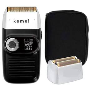Barbeador Elétrico Portátil Sem Fio Kemei Barbeador Kemei Km-2026 Preto 110V/240V Com o barbeador da Kemei, é possível desfrutar de um produto de qualidade com resultados estéticos excelentes. Graças às suas funcionalidades, você pode exibir a aparência que mais gosta. Marca: Kemei Modelo: KM-2026 Cor: Preto Voltagem: 110V/240V Sem fio: Sim Apto para viagem: Sim Com display digital: Sim Silencioso: Sim Função principal: Barbeador Tipo de alimentação: USB Materiais das lâminas: Aço inoxidável Potência: 5 W Inclui bateria recarregável: Sim Tempo de funcionamento: 120 m Tempo de carregamento: 2 h Acessórios incluídos: 1 cabo de carga, 1 escova de limpeza, 1 manual, 1 capa. Marca: Não Informado