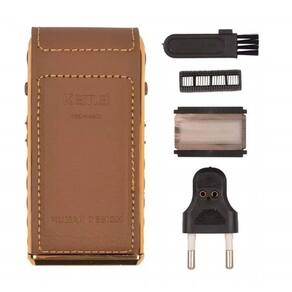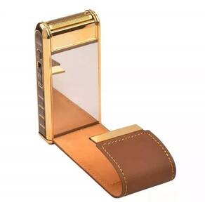 Barbeador elétrico alternativo. o projeto do vintage, envolto por couro, uma melhor proteção e mais nobre olhar. 2-em-1, barbeador elétrico ou depilador pessoal macio, perfeitamente fazer a barba. com a bateria de lítio recarregável, é absolutamente conveniente para você fazer a barba a qualquer momento. especificação: Material: Couro + Do Metal tensão: 110-240 V freqüência: 50-60Hz potência: 3 W tempo de carregamento: 8 horas tempo de operação: 30 minutos cor: Dourado peso: 124g tamanho: 5.5 x 10.5 cm Conteúdo Do pacote: 1 x Barbeador Elétrico 1 x Plug 1 x escova De Limpeza 1 x folha de Reposição 1 x cabeça de corte de Reposição Ean: 1718955001605