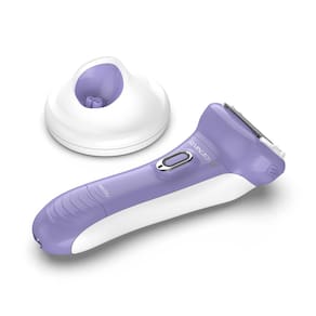 Barbeador elétrico macio e sedoso Remington WDF5030A para mulheres, barbeador de alumínio Smooth Glide de de 4 lâminas e aparador de biquíni com tira de óleo de amêndoa, roxo/branco