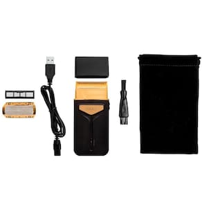 Para manter seus acessórios organizados, incluímos uma bolsa elegante que guarda o pincel de limpeza, cabo, foil e lâmina extra num único lugar.