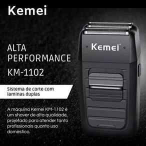 Barbeador KMEI 1102: O Melhor Aliado para um Barbear Confortável e Eficiente Apresentamos o barbeador elétrico Kemei KM-1102 110V/240V. Este aparelho corta os pelos na raiz, deixando a pele bem lisa, como se tivesse passado uma lâmina ou navalha. Pode ser utilizado também para depilar partes do corpo e cabeça. Este barbeador é ideal para pessoas que tenham alergia a lâmina ou a navalha, que é um método muito agressivo, com este aparelho não vai causar essa irritação.