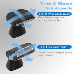 - Adequada para aparar o corpo: vem com 2 cabeças de barbear, a cabeça de lâmina de alumínio 3 em 1 é ótima para depilar pelos do corpo, como pernas, corpo, virilha, braço e costas. A lâmina larga pode remover com mais facilidade pelos indesejados das costas em segundos. A cabeça é substituível e pode ser lavada com água após o uso. Proporciona uma experiência de barbear suave e confortável sem causar irritação ou dano. Basta girar a cabeça de corte e substituí-la facilmente