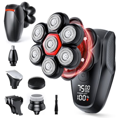 Barbeadores de cabeça para homens carecas – Navalha elétrica magnética 7D IPX8 à prova d'água para homens carecas, tela LED molhada/seca, recarregável, kit de cuidados com carregamento USB-C - Conjunto de cuidados 5 em 1: o conjunto de barbear requintado contém cinco cortadores de cabelo intercambiáveis, aparador de pelos do nariz, escova de massagem, escova de limpeza de borracha, acessórios de cuidados profissionais suficientes para atender às suas necessidades diárias e realizar a função de multiuso. Nossa navalha também tem um design lindamente embalado que a torna um presente de feriado perfeito para a família ou amigos - Rede de facas de precisão: a estrutura da rede de faca de precisão de camada dupla pode cortar com precisão cabelos curtos e longos, e a rede de faca de precisão pode aumentar o volume de barbear. Adotando tecnologia de sensor inteligente, pode efetivamente evitar beliscar o cabelo e proporcionar uma experiência de barbear confortável - Cabeça de barbear magnética 7D: a lâmina NEICIT possui uma cabeça de barbear magnética 7D que se adapta automaticamente aos contornos faciais, como pescoço e queixo, aumentando a área de barbear e economizando mais tempo. O design magnético recentemente atualizado permite uma limpeza profunda fácil da cabeça de barbear - À prova d'água IPX8: o design à prova d'água IPX8 permite que você use a lâmina para barbear molhado e seco no chuveiro e com cremes e espumas de barbear. Você também pode enxaguar cada lâmina diretamente sob a torneira para facilitar a limpeza e manutenção - Bateria de alto desempenho: carregamento rápido 1 hora para até 3 horas de operação e o visor LED mostra a porcentagem de energia para lembrá-lo de carregar seu barbeador elétrico. O design conveniente e compacto permite que você carregue o barbeador enquanto usa seu laptop, carro, energia móvel e outros dispositivos