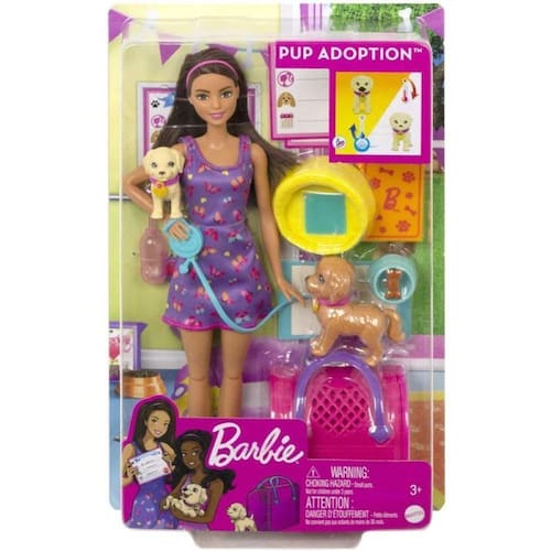 Barbie Conjunto Adota Cachorrinhos Negra - Mattel A Barbie vai adotar cachorrinhos com o conjunto Pup Adoption. As peças para contar histórias permitem que os jovens amantes de bichinhos se tornem novos tutores de cães e cuidem, alimentem e treinem dois adoráveis filhotes. A transformação com a mudança de cor acrescenta diversão à brincadeira na hora de comer e de usar o banheiro, e uma caixa de transporte de animais amplia a brincadeira do cuidado. A boneca não fica em pé sozinha. As cores e as decorações podem variar. Selo Inmetro: 00128-04A