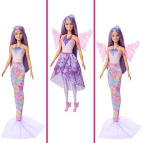 Você pode criar mais de 10 looks mágicos com o conjunto Barbie Fada e Sereia Este pacote fashion inclui 8 peças, como uma cauda de sereia, um conjunto de asas, uma saia e acessórios. As crianças podem estilizar e transformar a Barbie para aventuras fantásticas, do mar ao céu e onde quer que a imaginação as leve Fabricante: Mattel Ref.:JCP74 Código Barras:194735274734 Idade recomendada: Acima de 3 Anos Dimensões da Embalagem AxLxC : 32X25X5cm do Vendedor: 7 dias do Fabricante: 3 meses Homologação Inmetro: IP-BRI-1339/2021-01 Ean: 194735274734