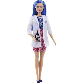 PRODUTO INTERNACIONAL. PRODUTO INTERNACIONAL. Explore um mundo de diversão científica com a boneca cientista Barbie! Quando as meninas brincam com barbie, elas imaginam tudo o que podem se tornar, e para aquelas que amam todas as coisas ciência, descoberta e experimentos, elas podem ser uma cientista! A boneca cientista Barbie tem cabelo azul colorido e usa um vestido de estampa de bloco de cores, um jaleco branco com design de logotipo inspirado na ciência, óculos e flats azuis. Ela também vem com um microscópio para pesquisa e experimentos! As crianças vão adorar as infinitas possibilidades de expressão criativa e diversão de contar histórias! A boneca não pode ficar sozinha. As cores e decorações podem variar. É um grande presente para crianças de 3 anos ou mais.