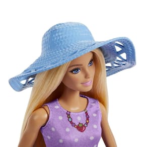 Contém: boneca Barbie Malibu com vestido e sapatos, bonequinha Chelsea com vestido e sapatos, cesta de piquenique, cobertor, cacho de banana, 2 baguetes, 2 bebidas, chapéu de sol e par de óculos de sol.