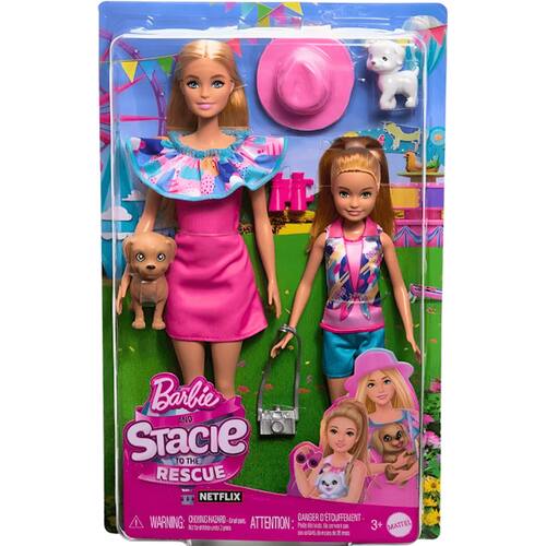 Divirta-se com este conjunto de bonecas com Barbie e sua irmã mais nova, Stacie!