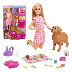 Surpresa: a adorável cachorrinha de estimação da Barbie® está esperando filhotes! Com o conjunto Barbie® cachorrinhos recém-nascidos, as crianças podem ajudar a boneca Barbie® a fazer o parto de três adoráveis filhotes de cachorro quando pressionam as costas da mamãe. Depois de dar as boas-vindas aos filhotes, as crianças podem encher a banheira com água gelada, depois mergulhar a toalha e passar sobre os cachorrinhos para revelar uma marca especial de nascimento em cada um. Os joelhos flexíveis da boneca Barbie ajudam-no a acolher os seus novos pets e, com um suporte para cachorros adorável com espaço para os três cachorrinhos, ela pode cuidar deles em movimento! Os acessórios adicionais para contar narrativas incluem uma garrafa, duas escovas, um brinquedo de corda, duas comidinhas, um saco de ração para cães e uma tigela. Com tantos acessórios para alimentar e oportunidades de narrativas, o conjunto de Cachorrinhos recém-nascidos da Barbie® é um excelente presente para crianças de 3 a 7 anos, especialmente para aquelas que adoram bichinhos! A boneca não fica em pé sozinha. As cores e as decorações podem variar.