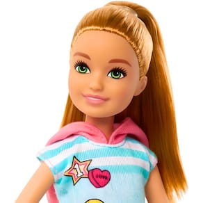 Esta boneca Stacie ajuda você a entrar na aventura de Barbie e Stacie ao resgate! Ela é igualzinha à personagem do filme, com seu rabo de cavalo alto, roupas e acessórios esportivos. A boneca Stacie também vem com um adorável cachorrinho de estimação para que as crianças possam viver aventuras ainda mais emocionantes com a irmã mais nova da Barbie! A boneca não fica em pé sozinha. As cores e as decorações podem variar.