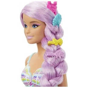 Inspirada no universo encantado de Barbie: Um Toque de Mágica, a Barbie Sereia convida você a mergulhar em um mundo de imaginação e estilo. Com cabelos extralongos e coloridos, essa sereia é perfeita para criar diferentes penteados cheios de criatividade e diversão.