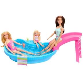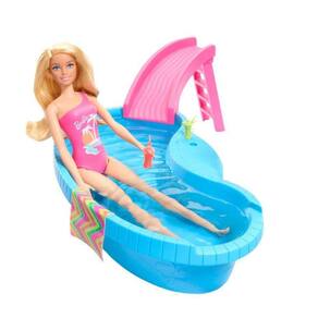 Divirta-se com estilo com a Barbie Piscina com Boneca Maiô Rosa Você pode mergulhar na diversão de verão com a boneca Barbie e sua piscina É fácil de encher e esvaziar, para uma festa na piscina. Ajude a Barbie a subir a escada e descer pelo escorregador, depois relaxe na água com uma bebida refrescante Viva momentos incríveis com Barbie e suas amigas neste cenário colorido e cheio de diversão.