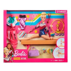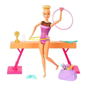 É tudo uma questão de encontrar o equilíbrio e pular obstáculos para alcançar seus sonhos! A Barbie Playset Ginasta Profissões vem com um ambiente de treinamento de ginástica com a Barbie Ginasta em um collant metálico colorido e também vem com uma malha extra, roupa de aquecimento, sapatos extras, toalha, lanches e uma bolsa de ginástica. Para fazer as apresentações, a boneca Barbie Ginasta tem uma trave de equilíbrio, 2 anéis, clipe giratório e 2 bastões para competir e se apresentar. E ai que tal dar umas piruetas com a Barbie?