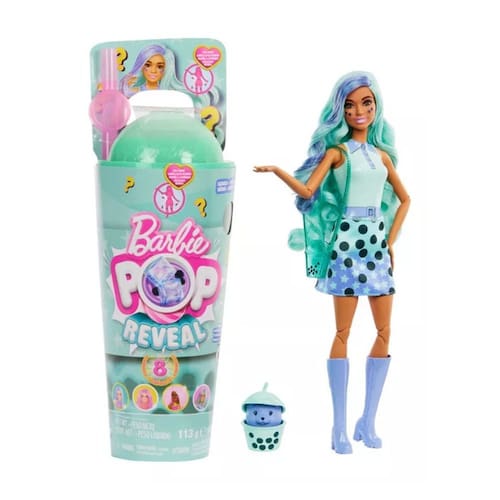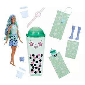 As bonecas Barbie Pop Reveal Série Bubble Tea oferecem uma experiência com oito surpresas! Basta tirar a tampa com o Slime e furar a película para se divertir com o esmagamento. Ao retirar a película da xícara, revelará uma boneca Barbie com aroma de chá de bolhas e mais oito surpresas! A brincadeira continua ao descobrir dois cubos de gelo que se abrem para revelar uma saia e um par de sapatos. Sacos misteriosos revelam um canudo, uma bolsa e um bichinho de estimação macio e perfumado!