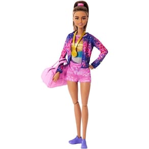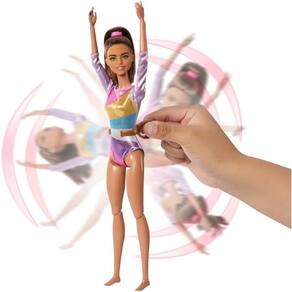 As crianças vão adorar o Conjunto de Ginástica da Barbie, que inclui uma boneca fashion, um recurso acrobático de salto mortal e mais de 10 acessórios para os eventos favoritos dos fãs! A imaginação pode criar rotinas para o chão ou para a trave de equilíbrio e executar movimentos aéreos com o mecanismo C-clip – basta encaixar na cintura da boneca para realizar cambalhotas, piruetas, saltos e muito mais! As peças adicionais para contar histórias incluem bastões, aros, um troféu e um traje de aquecimento, tornando a competição ainda mais divertida. Com tantas oportunidades de brincar, a boneca Barbie e o conjunto são um ótimo presente para crianças a partir de 3 anos de idade. A boneca não consegue ficar em pé ou girar sozinha. As cores e decorações podem variar.