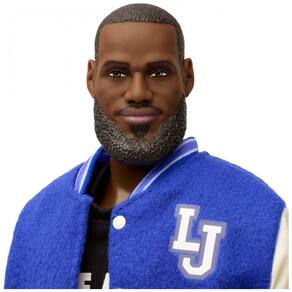 A boneco colecionável LeBron James Kenbassadors da linha Barbie Signature representa o jogador em uma proposta de colecionismo voltada a fãs de basquete e de cultura pop, com foco em acabamento detalhado e visual de streetwear contemporâneo. A figura traz o atleta com jaqueta bomber varsity, calça xadrez, tênis, boné e camiseta temática, acompanhada de acessórios que enriquecem a exposição em prateleiras ou vitrines.