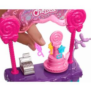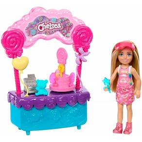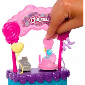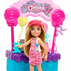 O conjunto de Estação de Doces e Pirulitos está repleto de diversão adocicada! O balcão da loja tem uma caixa registradora e um display giratório de pirulitos. Os acessórios para venda incluem um ursinho de pelúcia, pirulitos e balões que realmente cabem nas mãos das bonecas. A boneca Chelsea está pronta para comandar o estande como uma pequena chefe com seu visor rosa e vestido arco-íris. As crianças podem reproduzir esse momento favorito do filme de animação Barbie e Stacie ao Resgate! A boneca não pode ficar em pé sozinha. As cores e as decorações podem variar. A Barbie transforma o universo infantil em um campo de possibilidades ilimitadas. Mais do que uma boneca, ela inspira os pequenos a sonharem alto e acreditarem em si. Representando diversas realidades, suas bonecas e brinquedos de estilo icônico desenvolvem sua criatividade em um convite para explorar, sonhar e se tornar tudo o que quiser ser.