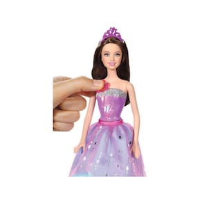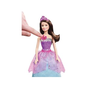 No filme Barbie Super Princesa, uma linda princesa recebe um beijo de uma borboleta mágica e acaba descobrindo que possui superpoderes. Será que ela vai se juntar aos seus superamigos e conseguir salvar o reino do inimigo? As meninas vão adorar brincar com a cena na qual Corinne, prima de Kara, é beijada por uma borboleta mágica e desenvolve seus próprios superpoderes. Pressione o botão em forma de borboleta em seu ombro para ouvir um beijo, seguido de um som mágico, e observe seu corpete brilhante vibrar com relâmpagos coloridos. Em seu lindo vestido roxo e azul com saia volumosa e peplum brilhante, ela é uma princesa perfeita.