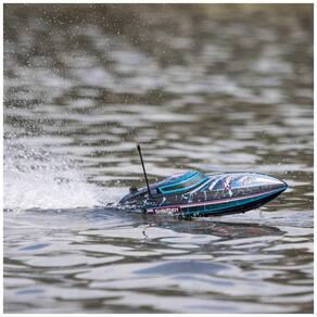 O Recoil 2 vem completo, pronto para navegar. Inclui um sistema de rádio Spektrum SLT3, bateria LiPo Smart, carregador USB-C, suporte para exibição e manutenção, e até mesmo baterias AA para o transmissor. Tudo que você precisa para começar está na caixa, tornando este barco uma escolha conveniente e acessível para qualquer entusiasta de RC.
