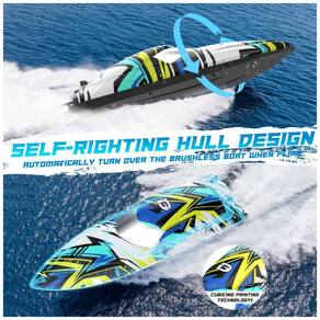 A direção responsiva e o controle total do acelerador, juntamente com a regulação contínua da velocidade, permitem manobras fáceis e precisas. O design autonivelante, combinado com tecnologia de impressão cúbica, torna cada barco único, enquanto a função de recuperação de capotamento de 180 graus o torna destemido diante de ventos e ondas.