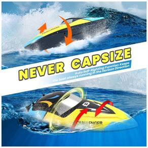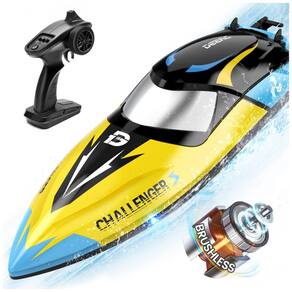O Barco RC Sem Escova Atualizado é um modelo de alta velocidade, capaz de atingir até 48 KM/H na superfície da água. Equipado com um potente motor sem escovas 2212, este barco possui um design de correção automática de 180 graus, garantindo estabilidade mesmo em condições de vento forte e ondas. As luzes LED em cada lado do casco facilitam a localização durante a noite, enquanto a função de alarme de bateria emite um bipe quando a energia está baixa, garantindo que você não fique na mão. Com uma distância de controle de até 120 metros, este barco é ideal para quem busca diversão em lagos e mares. Além disso, seu design de hachura dupla proporciona proteção à prova d'água, permitindo que você aproveite suas aventuras aquáticas sem preocupações.