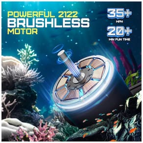 -Tempo de Uso: Até 20 minutos, graças à bateria de 2.000 mAh inclusa. -Desempenho Potente: Equipado com um motor brushless 2122 e servo de direção, que garantem potência e precisão, atingindo velocidades de até 35 km/h. -Controle Eficiente: O controle remoto opera na frequência de 2,4 GHz, sem interferências, com um alcance de até 127,66 metros. -Iluminação LED: LEDs brilhantes permitem a condução noturna.