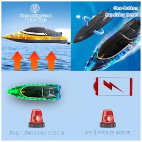Visibilidade Aprimorada: O tamanho maior e a bateria de longa duração garantem que você sempre veja o barco mesmo à distância. Baterias Recarregáveis: Inclui duas baterias de grande capacidade, cada uma com mais de 30 minutos de uso contínuo, para uma experiência de jogo prolongada. Iluminação Dinâmica: O casco possui um design de iluminação que acompanha a direção, permitindo identificar claramente a posição e a direção do barco mesmo em ambientes escuros. Funções Práticas: Inclui lembretes de bateria fraca e de sobredistância, função de redefinição de capotamento e sensor que desativa o barco fora da água.