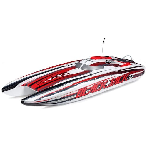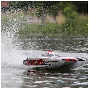 O Barco de Controle Remoto Catamarã Blackjack é uma homenagem aos tradicionais barcos de corrida, projetado para enfrentar concorrentes com estilo e velocidade. Equipado com um controlador eletrônico de velocidade inteligente Spektrum 160A, refrigerado a água e classificado para 8S, ele alimenta o motor Spektrum Marine 4685 de 4 polos, também refrigerado a água, que gera impressionantes 5,3 cavalos de potência e alcança velocidades superiores a 88 km/h. Com o sistema Spektrum Smart, este barco combina potência e inteligência, garantindo uma operação eficiente e responsiva. O transmissor Spektrum DX3 e o de telemetria SR6110AT de 6 canais à prova d'água mantêm a conexão estável, oferecendo operação sem interferências e telemetria integrada. O Blackjack apresenta um casco de policarbonato resistente a impactos, capota com parafusos de polegar de alumínio, um interior moldado limpo e um leme de alumínio com suporte de hélice, proporcionando durabilidade e desempenho excepcionais. Prepare-se para dominar o lago com o catamarã Pro Boat Blackjack 42!