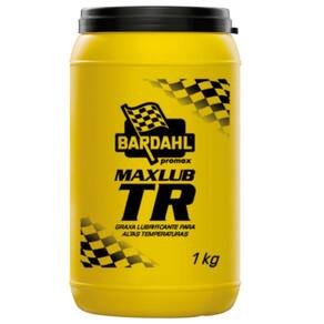 O maxlub tr bardahl 1kg, é uma graxa lubrificante mineral á base de bentonite para aplicações em altas tempeaturas. indicado para exaustores, vagonetes, correntes transportadoras de fornos e estufas, mancais planos, rolamentos, guias, engrenagens e todos os pontos onde prevaleçam as temperaturas elevadas de ambiente ou de trabalho. Produto de ótima qualidade, excelente em relação á custo x beneficio.