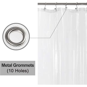 Cabeçote de malha de nylon reforçado com ilhós de metal, o que tornará este forro de cortina de chuveiro fácil de pendurar e ajustar suavemente.