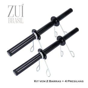 Kit Funcional Barras Para TreinamentoContém:2 Barra Oca de 40cm4 Presilhas de 1 polegadaExercícios com barra recruta mais músculos para realiza-los, o corpo precisa ativar outros grupos musculares para sustentar o movimento, oferecendo assim um trabalho e treino mais completo.Estimula a coordenação motora e o equilíbrio, oferecem mais desafios para o corpo e contribuem para a coordenação motora e ganho de equilíbrio. Oferecem maior variedade de exercícios, com uma mesma barra é possível trabalhar todo o corpo.CARACTERÍSTICAS BARRA OCAMarca: Zuí BrasilContém: 02 UnidadesComprimento: 40cmDiâmetro: 25 mm ou 1 polegadaComposição: FerroOrigem: NacionalGarantia: Defeito de FabricaçãoGênero: Unissex- Ideal para Exercícios de Peso Livre- Suportam até 60kg de Anilhas- Extremamente Prática e Fácil de Guardar- Tamanho Ideal para Praticar Exercícios- Barra ProfissionalPRESILHAS EXTRA FORTE:Contém: 04 UnidadesEspessura: 1 polegadaComposição: Arame + Grosso 3,8mm Maior ResistênciaGarantia: Defeito de FabricaçãoLIMPEZA E CONSERVAÇÃO:Limpe apenas com pano úmido e sabão neutroNão seque ao sol ou secadores elétricosGuardar fora do alcance do solNão pisarSeguindo essas instruções, você terá seu produto por muito mais tempo.Qualquer dúvida estamos à disposição Marca: Zuí Brasil