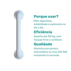 Disponível em comprimentos de 30 cm, 40 cm, 50 cm e 80 cm, adapta-se a diferentes necessidades e espaços, promovendo mais confiança e independência para idosos, pessoas com mobilidade reduzida e usuários em reabilitação.