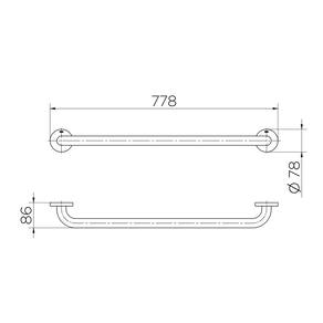 Tamanho da Barra: 70cm; Dimensões AxLxP (mm): 78x778x86; Cor: Cromado; Garantia: Garantia Toda Vida Docol; Referência: 00963616; Composição: Aço inox 304 e plásticos de engenharia;