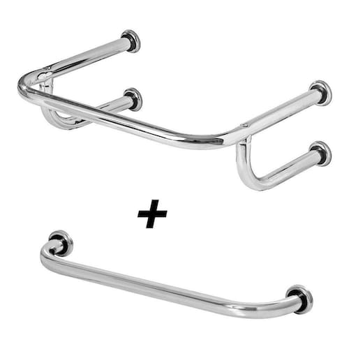 Conteúdo da embalagem - 1 Barras de apoio para banheiro de 80Cm e 1 Barra de apoio para lavatório 40x50Cm.