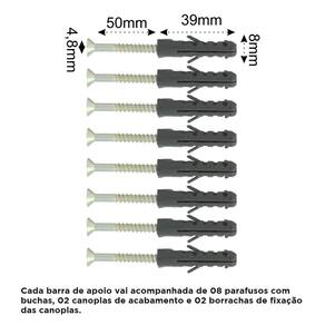 - Acompanha bucha e parafusos para a instalação 8 parafusos 4,8 mm x 50 mm e 8 buchas 6 mm proporcionando grande resistência ao peso conforme norma NBR 9050 115 kg .