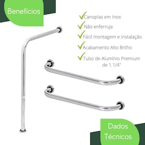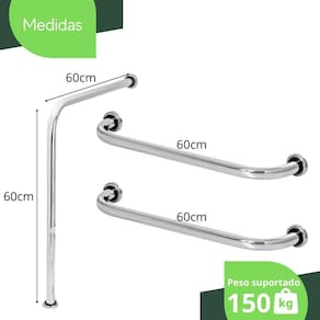 Conteúdo da Embalagem: 1 Barra de apoio em L 60x60, 2 Barras de Apoio Retas 60cm, Parafusos e Buchas
