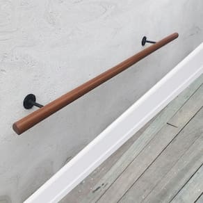 O kit contém: 1 barra de 1 metro de madeira jequitibá de 38mm de diâmetro envernizada 2 suportes de ferro na cor preta para fixação na parede Parafusos e buchas.