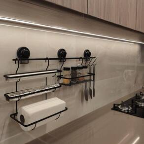 A barra de cozinha preta com ventosa é a melhor escolha quando se trata de organização neste ambiente. Essa barra de utensílios possui fixação por ventosas, por isso dispensa o uso de ferramentas e furos na parede. Com este organizador de cozinha você terá mais de 60cm para pendurar talheres, suporte para xícaras, suporte de copos, suporte de material de higiene e o que mais desejar. O design inovador de cor preto fosco comporá de forma sofisticada a decoração já existente em sua cozinha.