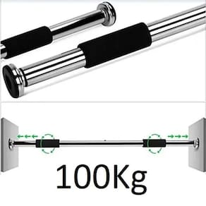 Esta barra se ajusta em portas de 62cm a 100cm Esta barra sustenta até 100kg Certifique-se de ter ajustado bem a barra antes de começar a se exercitar Embalagem: 1 Unidade