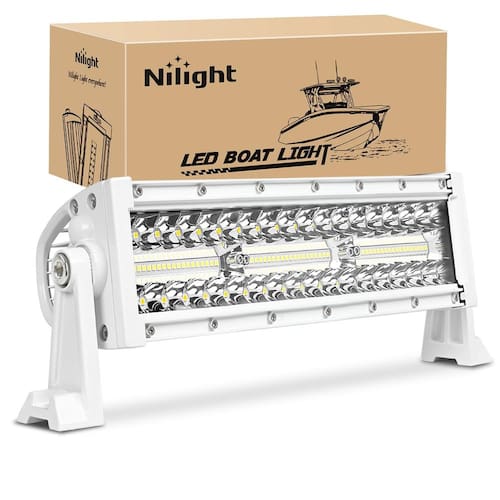 Nilight Barra de luz LED marítima, luzes de navegação de 33,5 cm, conjunto de inundação de pontos brancos, ponton, barco, doca, luzes para pesca noturna, porta de iate, veleiro, caminhões, tratores - Brilhante e seguro: com 128 peças de chips de luz LED de alta intensidade 3W potentes. O combo de feixe de inundação de 60° e feixe pontual de 30° em copos refletores fornecem uma iluminação mais brilhante, luz branca brilhante de 6000 K e visão mais ampla, aumentando a segurança para sua pesca noturna, caça noturna, passeio noturno ou qualquer outra atividade noturna - Excelente desempenho: Feito de liga de alumínio fundido resistente à corrosão, lente de PC atualizada com mais de 90% de transmissão de luz. Além disso, 9 peças de aletas de resfriamento para dissipar o calor mais rapidamente, prolongando efetivamente a vida útil para mais de 50.000 horas - Durável e à prova d'água: com carcaça de alumínio de construção sólida (revestimento em pó durável) e suporte de montagem e ferragens de aço inoxidável, anticorrosivo, à prova de poeira, à prova de terremoto, proporcionando ótima experiência de navegação e direção. IP67 à prova d'água, teste de pulverização de sal de laboratório aprovado por 72 horas, garante excelente desempenho mesmo em condições climáticas extremas, como chuva forte, neve, granizo, tempestade, etc - Fácil de instalar: instalação de montagem flexível, vem com acessórios de montagem ajustáveis de 360°, design universal de montagem embutida permite que as luzes ajustem a posição de instalação e o ângulo para mudar facilmente a direção do feixe de luz - Amplas aplicações: Capaz de trabalhar em 10-30V com baixo consumo de energia. Perfeito para barcos de pesca noturna, barcos de pontão, iates, veleiros, barcos, barcos a remo, barcos a remo. Não limitado a caminhão, trator, off-road, jipe, pickup, SUV, ATV, UTV, carrinho de golfe. Também amplamente utilizado em ambientes internos e externos, como luz de reserva/ré, iluminação off-road, iluminação de barco marítimo, iluminação de equipamentos de construção, iluminação de emergência e resgate e muito mais