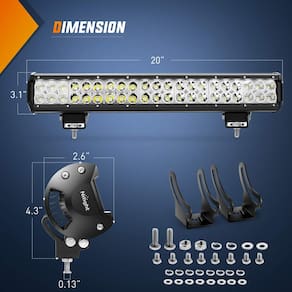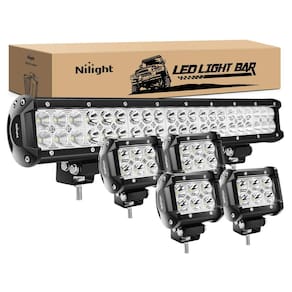 Nilight - Barra de luz LED combinada de inundação pontual ZH003 de 20 polegadas e 126 W, 4 unidades de 4 polegadas e 18 W, faróis de neblina para caminhão-trator Jeep Wrangler, trailer off-road, garantia de 2 anos - SUPER BRIGHT BEAM: chips LED de alta intensidade de 3 W e lente transparente de PC, luz branca superbrilhante dissipa a escuridão, garantindo a segurança de sua viagem - Feixe combinado, visão clara: combinação de pontos apropriada para 126 W feixe e feixe de inundação para iluminação ampla e de longa distância - Suporte de montagem ajustável: a barra de luz pode ser ajustada para cerca de 45 graus, o que faz com que a mudança de direção de feixe de luz mais fácil - Melhor dissipação de calor: aletas de resfriamento de liga de alumínio fundido com design especial estendem efetivamente a vida útil para mais de 30.000 horas - O pacote inclui: barra de luz LED combinada de 1 unidade de 126 W, 4 barras de luz LED spot de 18 W e suportes de montagem