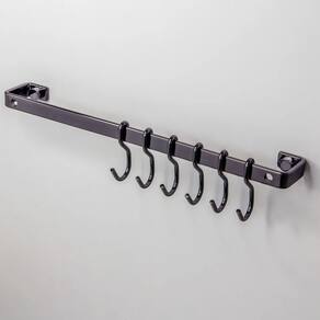 Barra de Parede Piatina 30cm com 6 ganchos Preto Ônix Future
