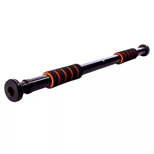 Barra de exercícios ajustável de porta.Promove trabalho intenso dos músculos superiores e permite diversas formas de exercícios.Material resistente: Aço com pegadas em espuma e ponteiras em PVC.Prática e Funcional, se ajusta a portas com batentes entre 63 a 96 cm de distância.