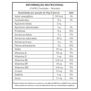 Com vitaminas A, D, B6, B9 e B12, além dos minerais cromo, selênio e zinco, a Barra Yopro oferece um suporte completo para a sua nutrição. Esses nutrientes são essenciais para o bom funcionamento do organismo e contribuem para a manutenção da saúde.