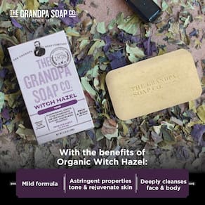 - SABONETE EM BARRA DE HAMAMÉLIS A propriedade adstringente da hamamélis orgânica é aprimorada pela relaxante lavanda em uma fórmula suave que tonifica e rejuvenesce suavemente. O sabonete em barra Witch Hazel é o sabonete preferido após um longo dia de trabalho — feito com ingredientes que funcionam tanto quanto você.