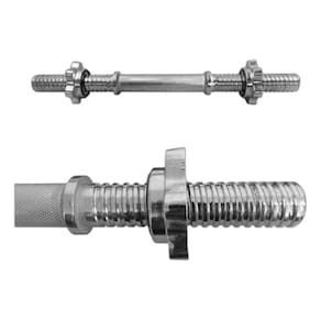 As barras de musculação 40cm maciça cromada com rosca é excelente para exercícios onde se requer levantamento de peso. Barra maciça e cromada com pegada recartilha, desenvolve a musculatura com segurança, já que apresenta uma região mais áspera, evitando que ela escorregue das mãos e provoque acidentes. Material de ótima qualidade durável e resistente. Com prático sistema de travas por rosca rápida permite trocas de pesos mais rápidas. Cromada em sistema de banho com tecnologia de proteção ao meio ambiente, as barras maciças são confeccionadas em aço 1020.
